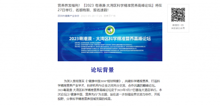 營(yíng)養(yǎng)界發(fā)福利!『2023 粵港澳·大灣區(qū)科學(xué)精準(zhǔn)營(yíng)養(yǎng)高峰論壇』將在27日舉行,名