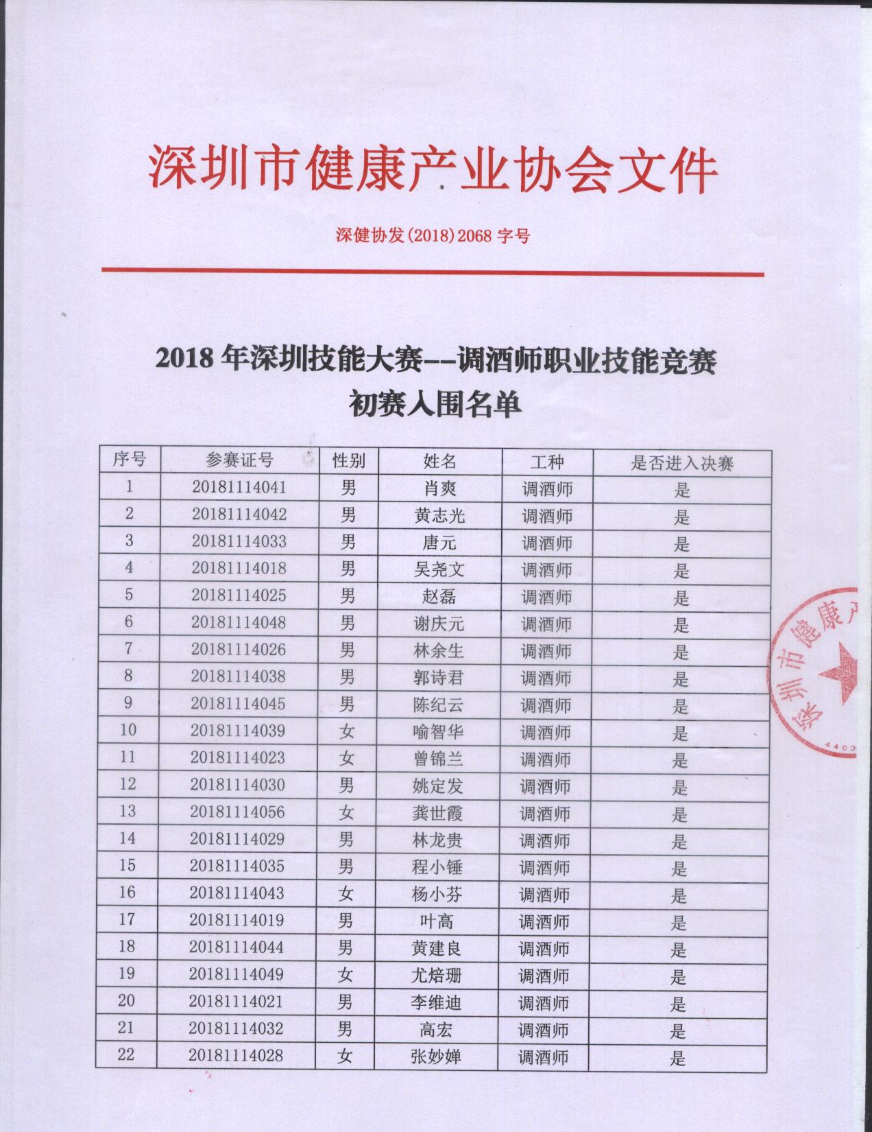 (最新)2018年深圳市調(diào)酒師大賽決賽入圍公示